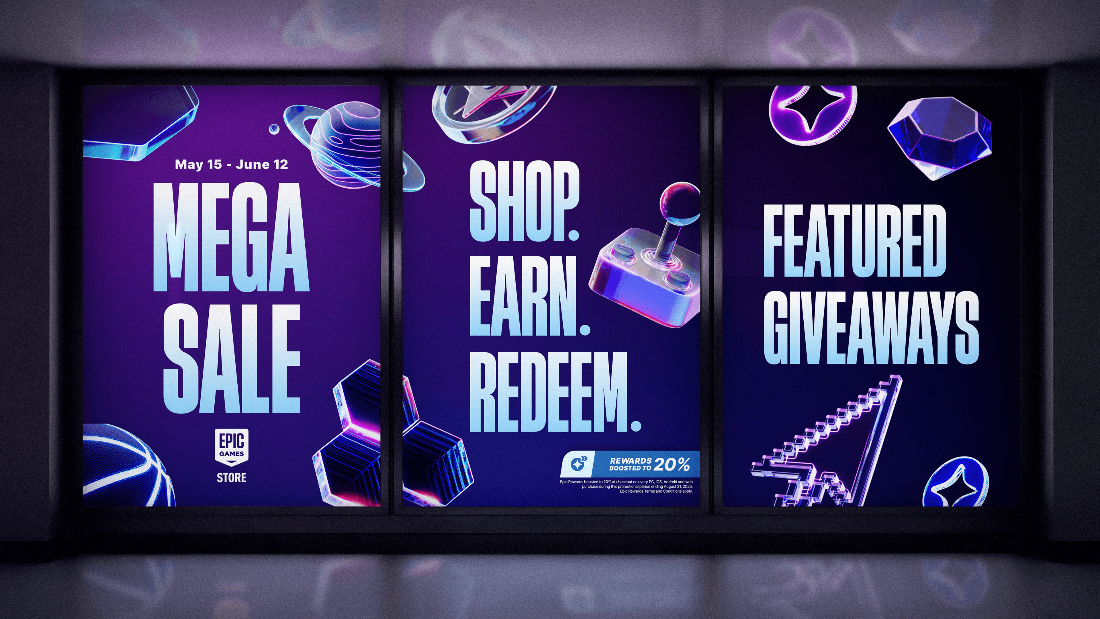 Gift unwraps for 17 days of free games, Epic Rewards boost is also applied during the sale. Example of boost elements being used across all campaign artwork.